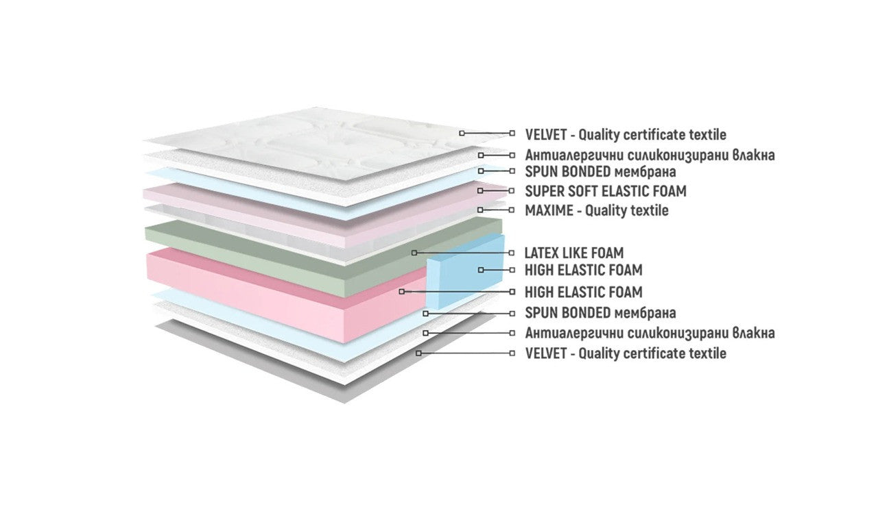- OEKO-TEX сертификат за безопасност, гарантира, че за производството на текстила в матрака са използвани материали безвредни за човешкото тяло и природата.