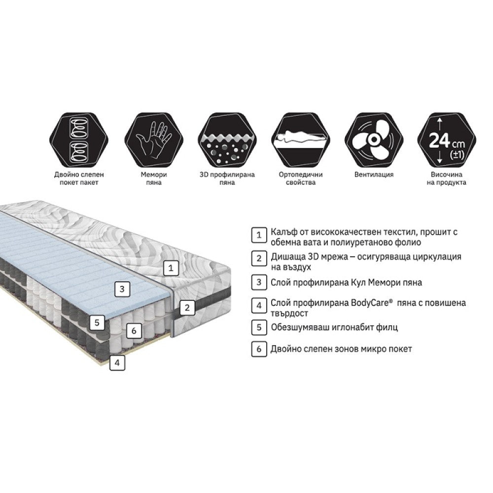 Хибридна структура, която съчетава предимствата на Pocket Spring технологията и комфорта на високия клас полиуретанови пяни.
