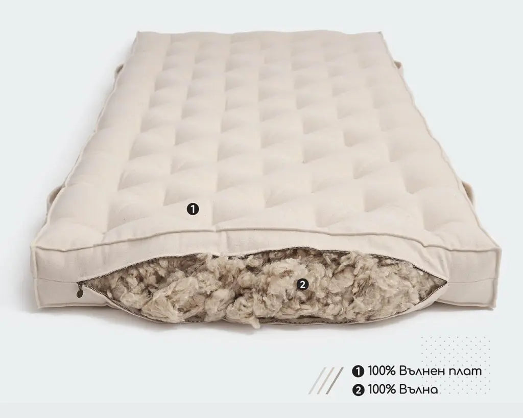 Двулицев матрак с органична GOTS вълна от Home of Wool с текстил от вълна, 18 см