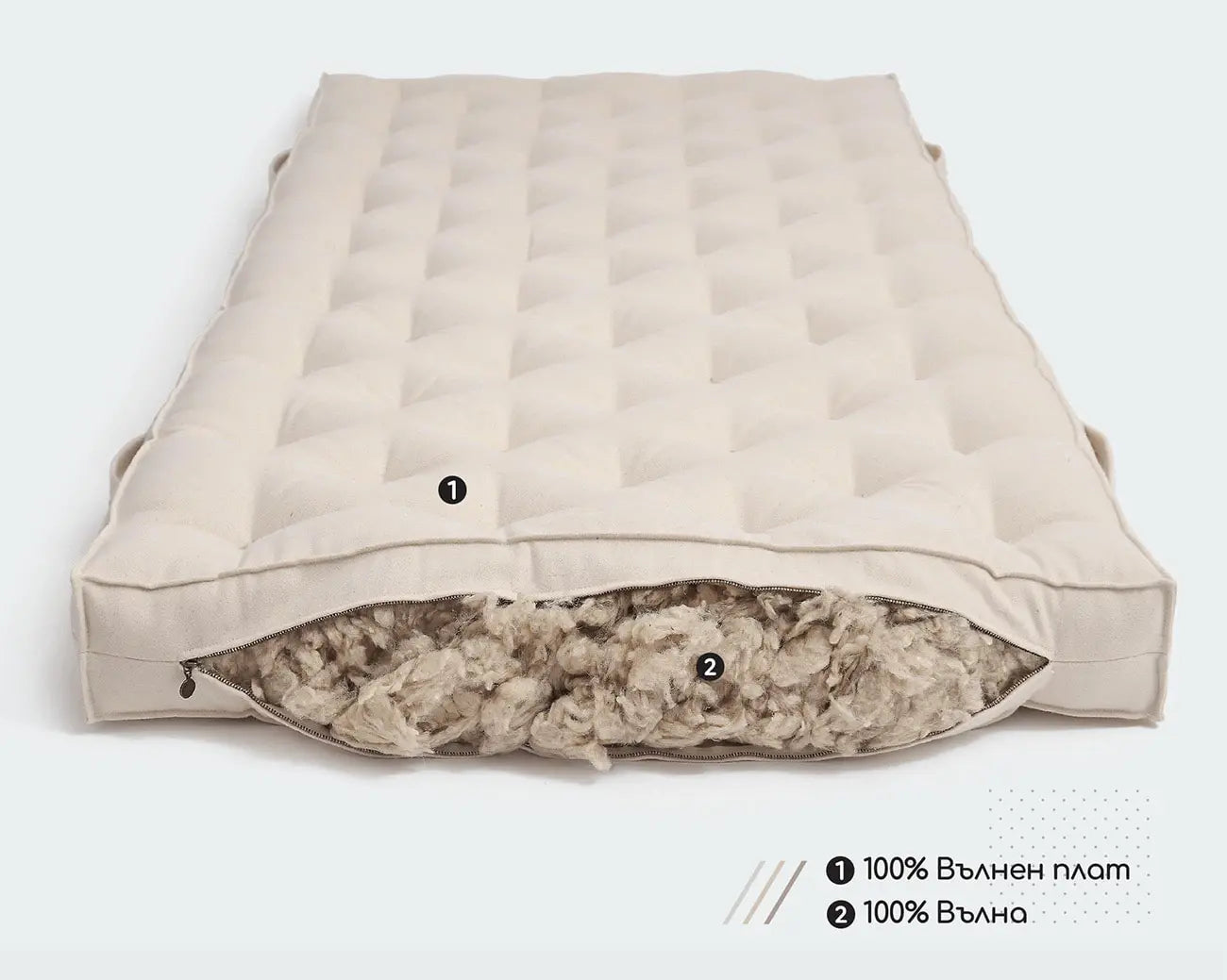 Двулицев матрак с органична GOTS вълна от Home of Wool с текстил от вълна, 8 см