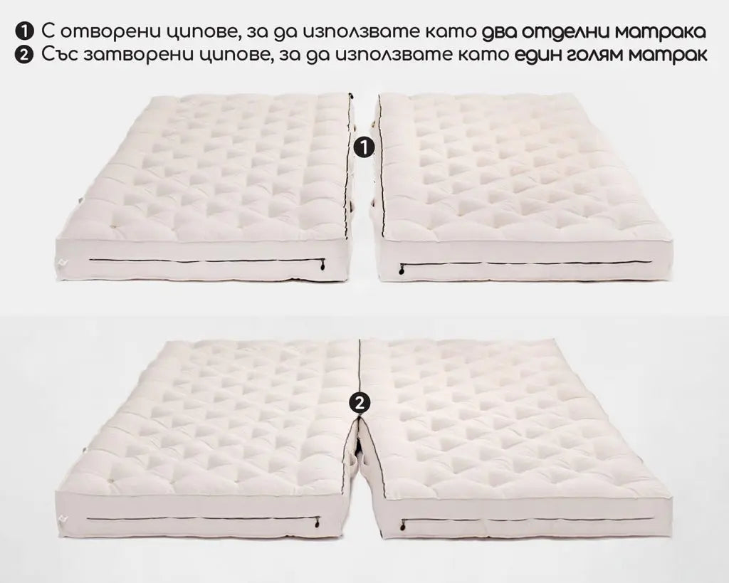 Двулицев матрак от вълна в 2 части от Home of Wool с текстил от вълна, 18 см