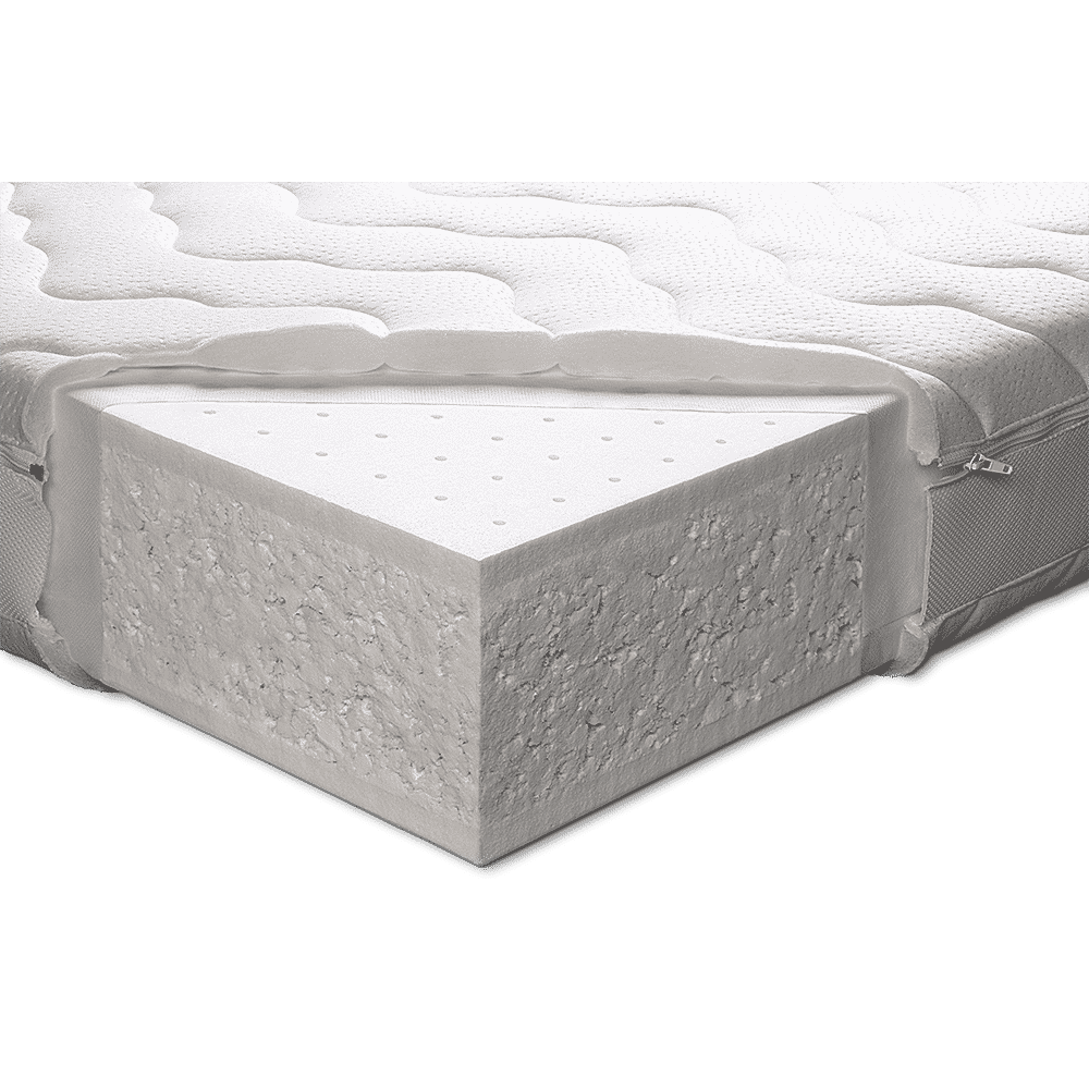 Двулицев матрак с ядро от 100% натурален латекс. Натуралният латекс представлява млекообразна бяла течност, извлечена от каучуковото дърво Hevea Brasiliensis, което се отглежда в тропически плантации. Този продукт е с трислойна конструкция - 2 слоя монолитен пенолатекс, а между тях - слой от повторно вулканизирани пенолатексови частици за още повече мекота и комфорт. Друга отличителна черта на пенолатекса е отворената му клетъчна структура. Това определя способността му да “диша”, т.е. въздухът да преминава свободно през него, като по този начин се намалява запарването. Друго предимство на латекса са неговите естествени антибактериални свойства, които в случая осигуряват възможно най-хигиенична среда за сън. Текстилът на калъфа е от трипластово трико, а сваляемият калъф прави почистването и поддръжката още по-лесна и удобна.
