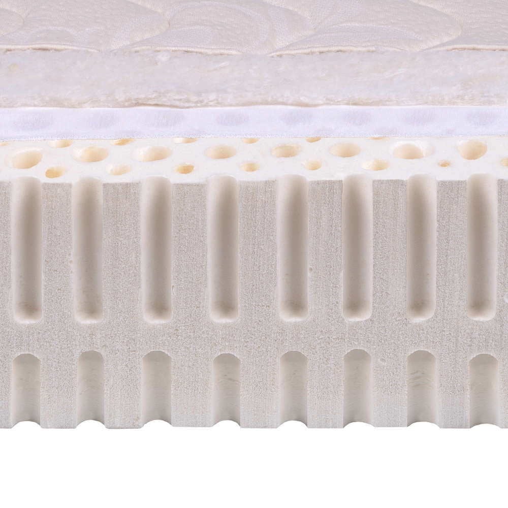 Двулицев матрак с ядро от 100% натурален латекс. Натуралният латекс представлява млекообразна бяла течност, извлечена от каучуковото дърво Hevea Brasiliensis, което се отглежда в тропически плантации. Друга отличителна черта на пенолатекса е отворената му клетъчна структура. Това определя способността му да “диша”, т.е. въздухът да преминава свободно през него, като по този начин се намалява запарването. Друго предимство на латекса са неговите естествени антибактериални свойства, които в случая осигуряват възможно най-хигиенична среда за сън. Текстилът на калъфа е от 100% памук, а ципът позволява да се сваля и поддържа чист по удобен и лесен начин.