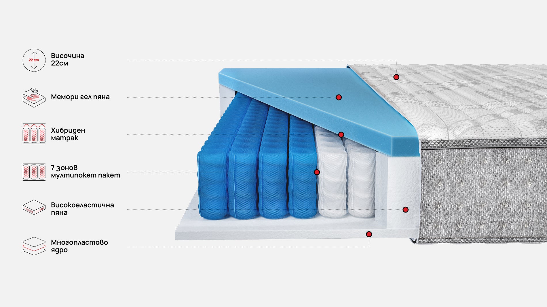 Технология на ядро 7 зони на комфорт,Многослойно ядро
