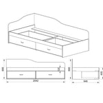Легло Сити 2023 се предлага за еднолицев матрак 90/200 см с 2 чекмеджета, които оползотворяват подматрачното пространство.