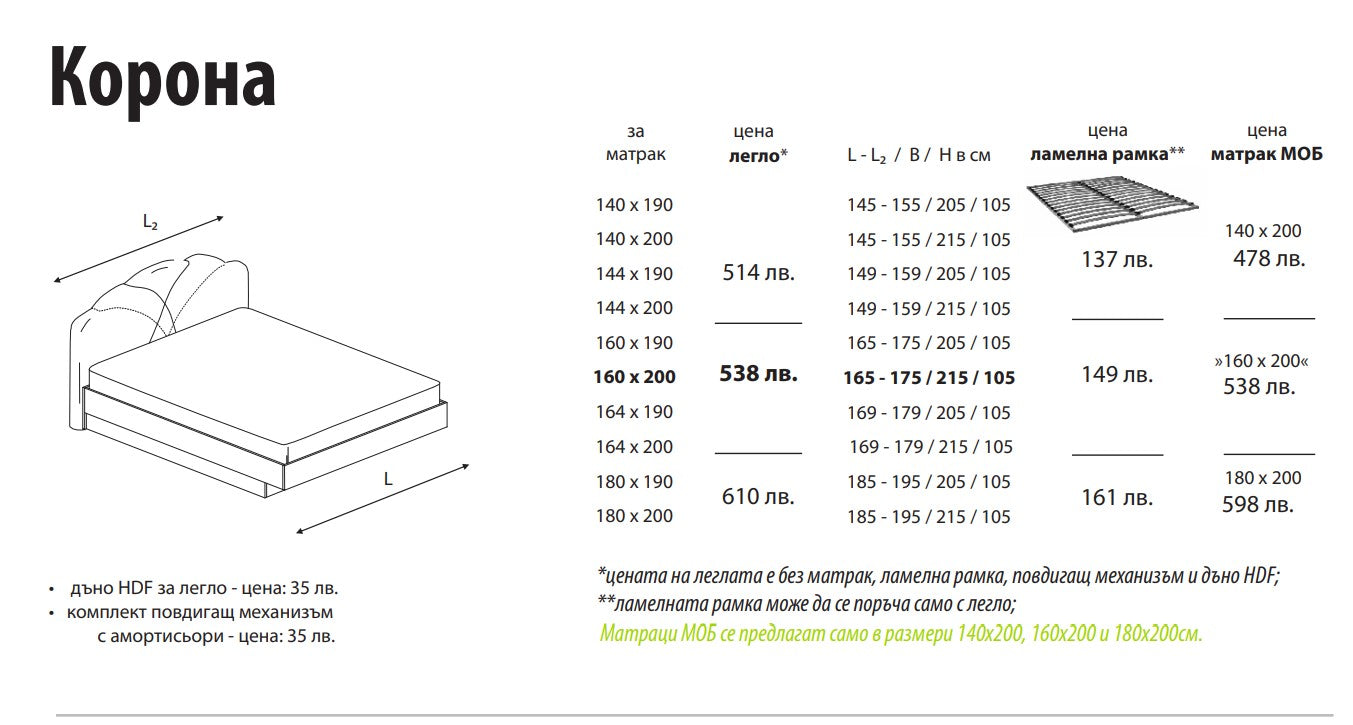 · Не предлагаме опция качване по етажите, извозване на стария матрак и монтаж.