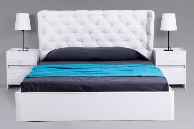 Тапицирана спалня с висока, мека табла за максимален комфорт при облягане