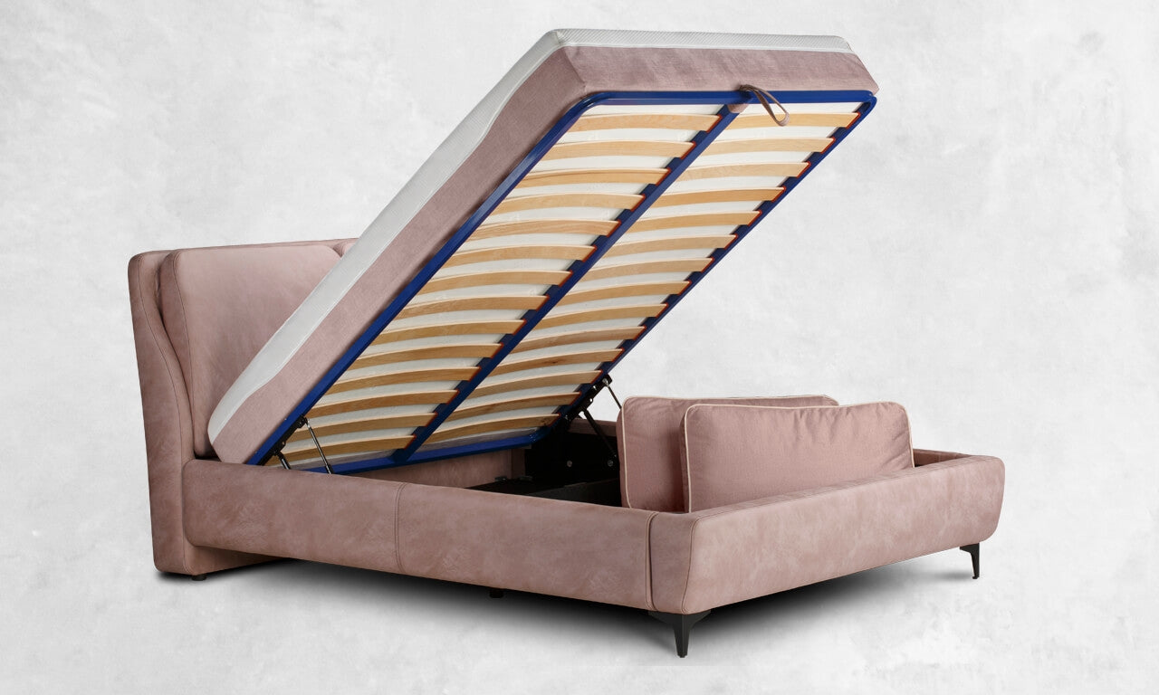 Тапицирана модерна спалня в комплект с вградена подматрачна рамка.