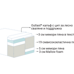• Мемори пяната гарантира спокоен сън без въртене, като реагира на теглото и температурата на тялото и се адаптира към извивките му.