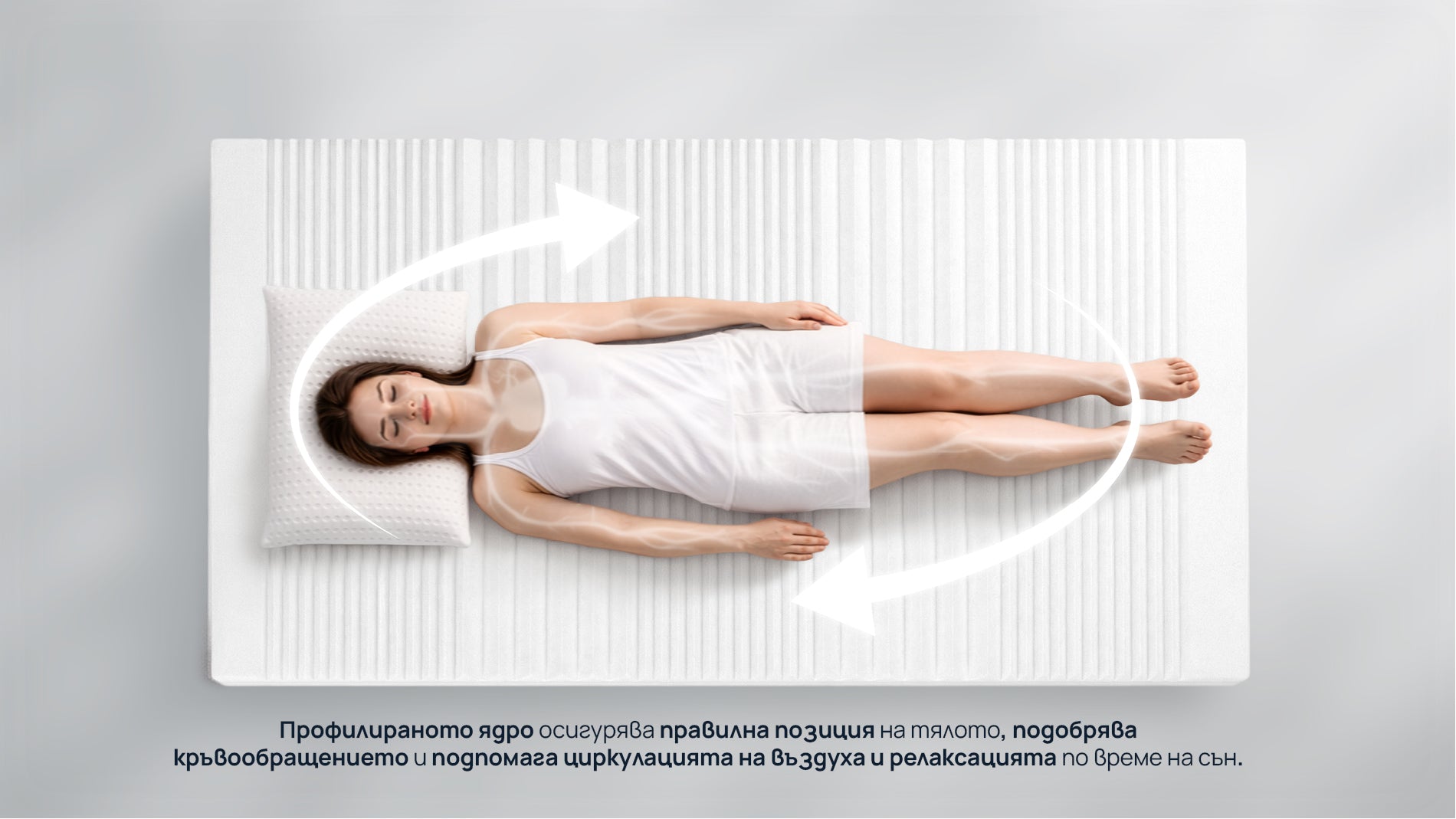 - Профилираното ядро осигурява правилна позиция на гръбначния стълб и подобрява кръвообращението по време на сън.