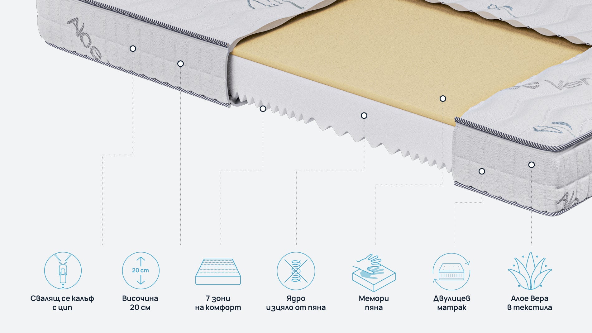 Двулицев матрак iZone Memory от Sleepy 20 см