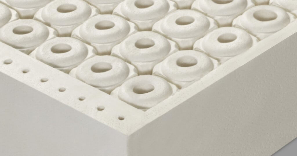 • Латексът е дълготраен еластичен материал, който допринася за намаляване напрежението в мускулите и осигурява ортопедична подкрепа на гръбначния стълб.