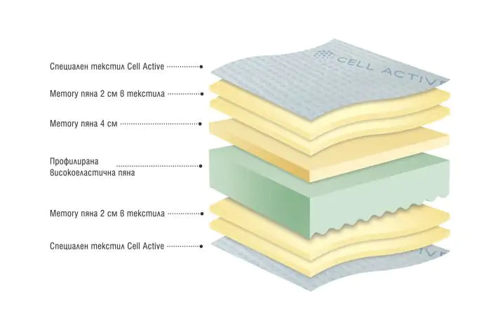 Матрак с ядро от профилирана високоеластична пяна и мемори пяна.