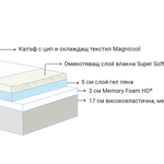 Мек матрак, съчетаващ гел пяна и мемори пяна, заедно с иновативен, охлаждащ текстил Magnicool.