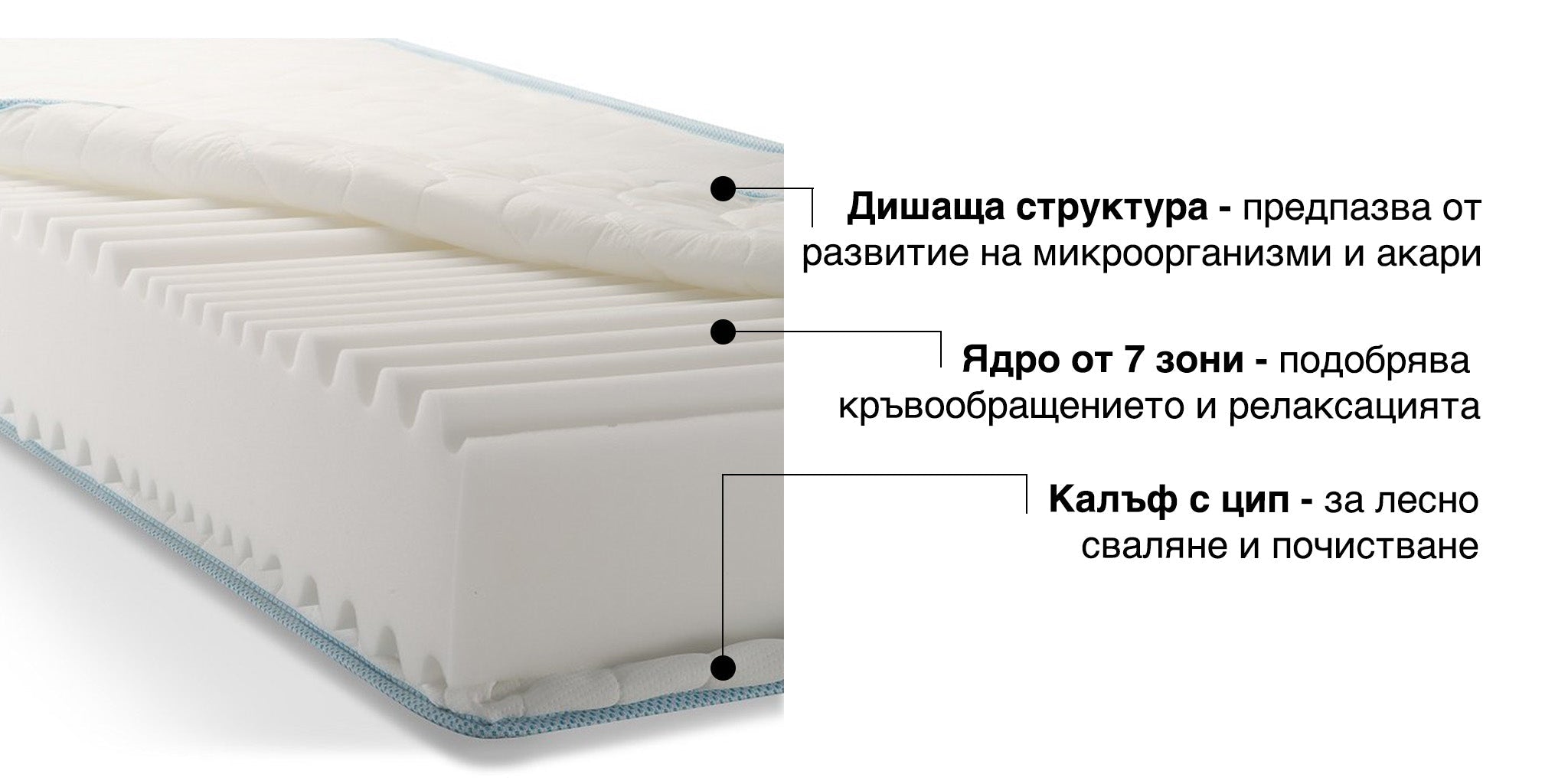 Технология на ядро Профилирано ядро,7 зони на комфорт