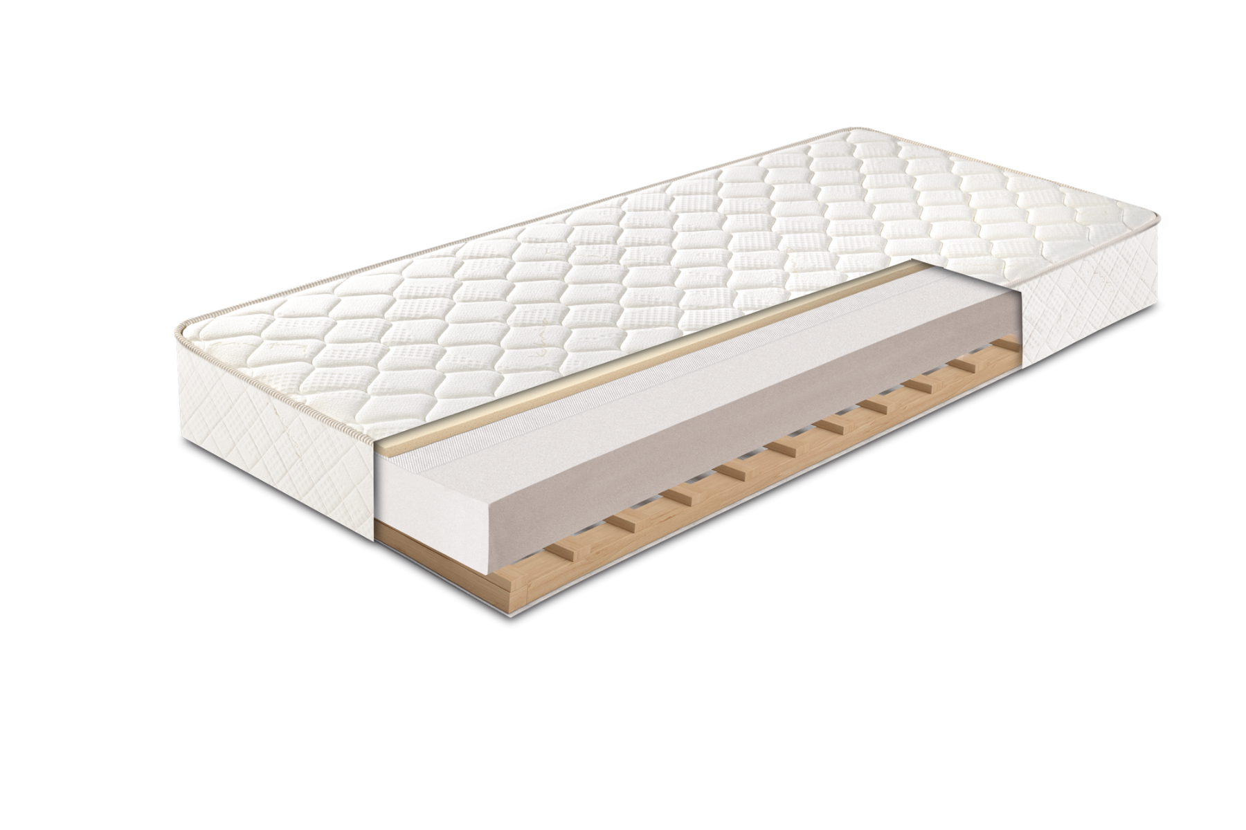 Матракът е с ядро от еластична пяна, допълнено от слоеве мемори пяна, които отнемат напрежението от тялото по време на сън.
