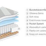 - Покет пружините се адаптират към извивките на тялото, гарантирайки отлична изолация на движенията за спокоен съвместен сън.
