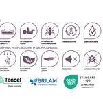 Продуктите са водоустойчиви и дишащи – отблъскат течностите като ги изпаряват, поддържайки кожата винаги суха и същевременно позволявайки да диша през плата. Така се създава перфектната среда за спане и почивка.