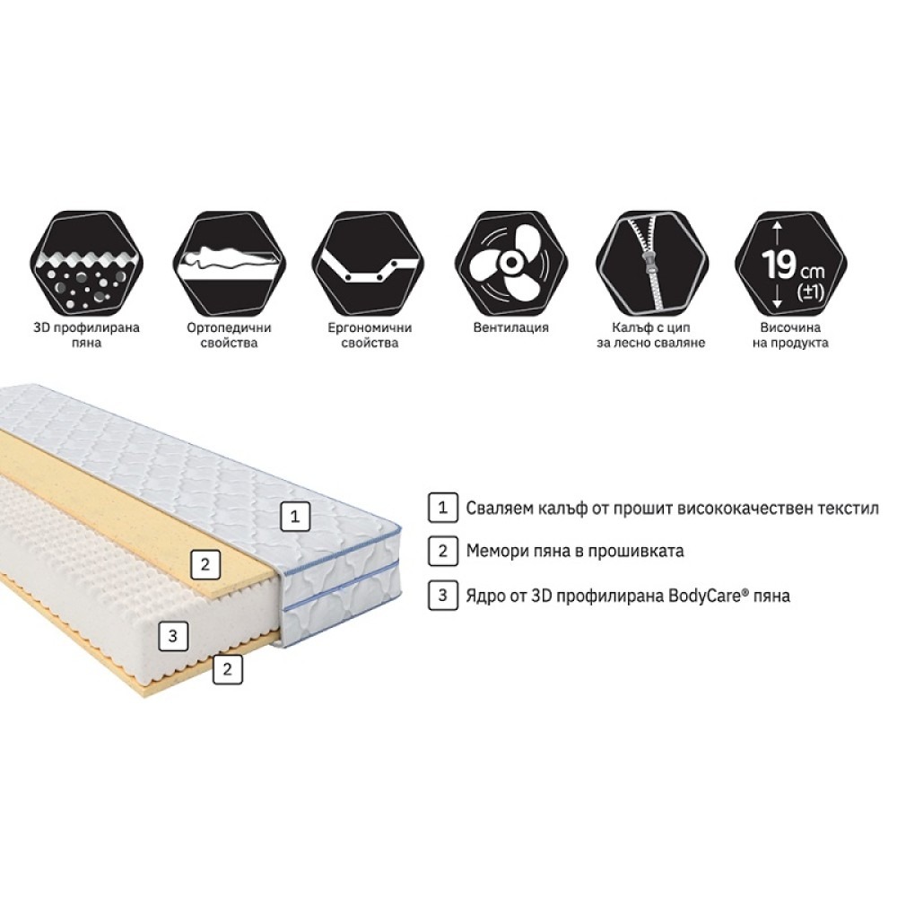 Препоръчваме използването на ламелна подматрачна рамка, която позволява по-добрa вентилация и увеличава комфорта.